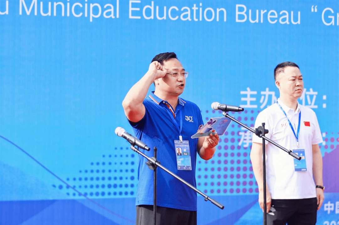 市教育局党委书记、局长、场馆指挥长钮俊,市教育局党委委员、市纪委市监委驻局纪检监察组组长王秀清,市教育局党委委员、二级巡视员熊群峰,市教育局党委委员、总督学孔永国,钱塘区公安分局党委委员、副局长、场馆安保副指挥长胡一鸣出席开赛仪式。