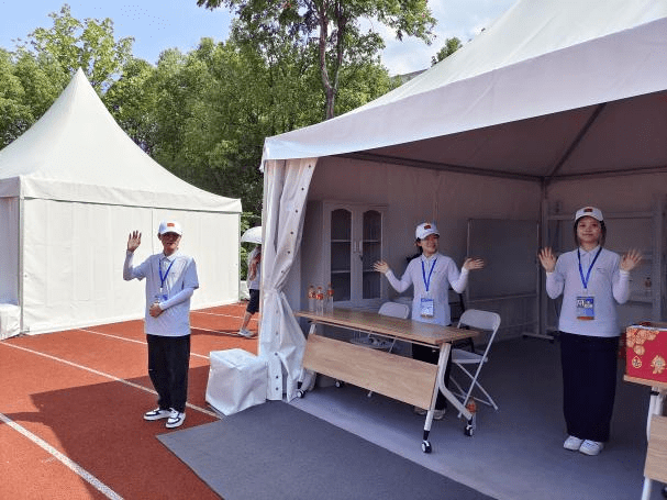 从彩排到赛时,来自浙江水利水电的小青荷们严格按照场馆每日运行时刻表各司其职。他们向标杆志愿者看齐,微笑招呼、热情服务,尽显“水分子”的青春风采。
