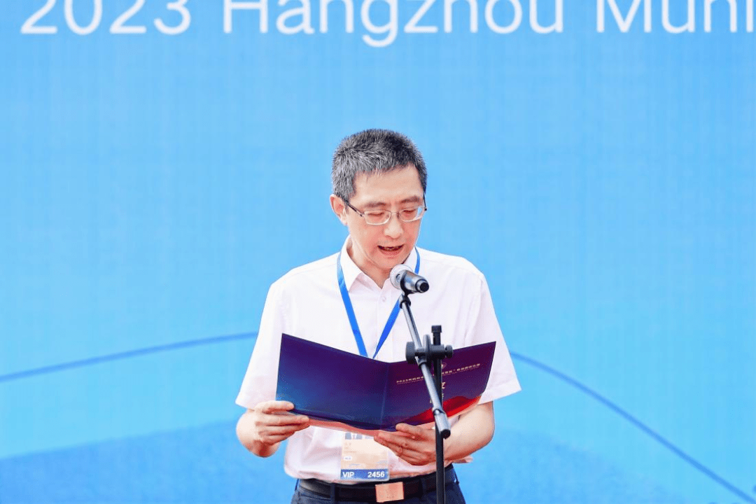 杭州市教育局党委副书记、副局长、场馆常务副指挥长陈萍主持开赛仪式。
