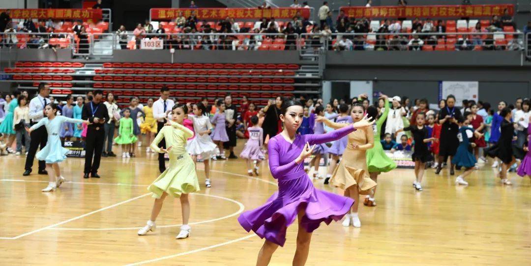 4月30日,苍南县体育馆,舞步飞扬,星光璀璨。2023WDC全国体育舞蹈国际标准舞公开赛在苍南华丽登场,来自全国各地近500名选手同场竞舞。